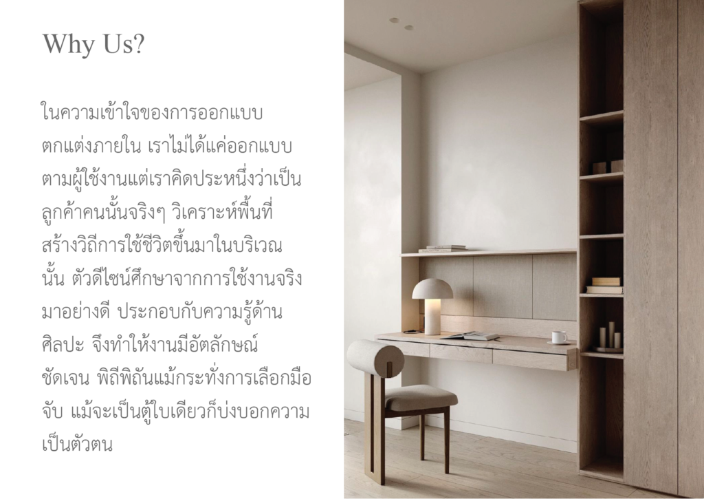 จากจุดเริ่มต้นเล็กๆ ของงานออกแบบคาเฟ่ และ บ้านพักอาศัย สู่วันนี้เราคือโรงงานผลิตตู้บิ้วท์อิน หากคุณกำลังมองหาตู้บิ้วท์อินที่มีอัตลักษณ์เฉพาะตัว เราคือทางออก