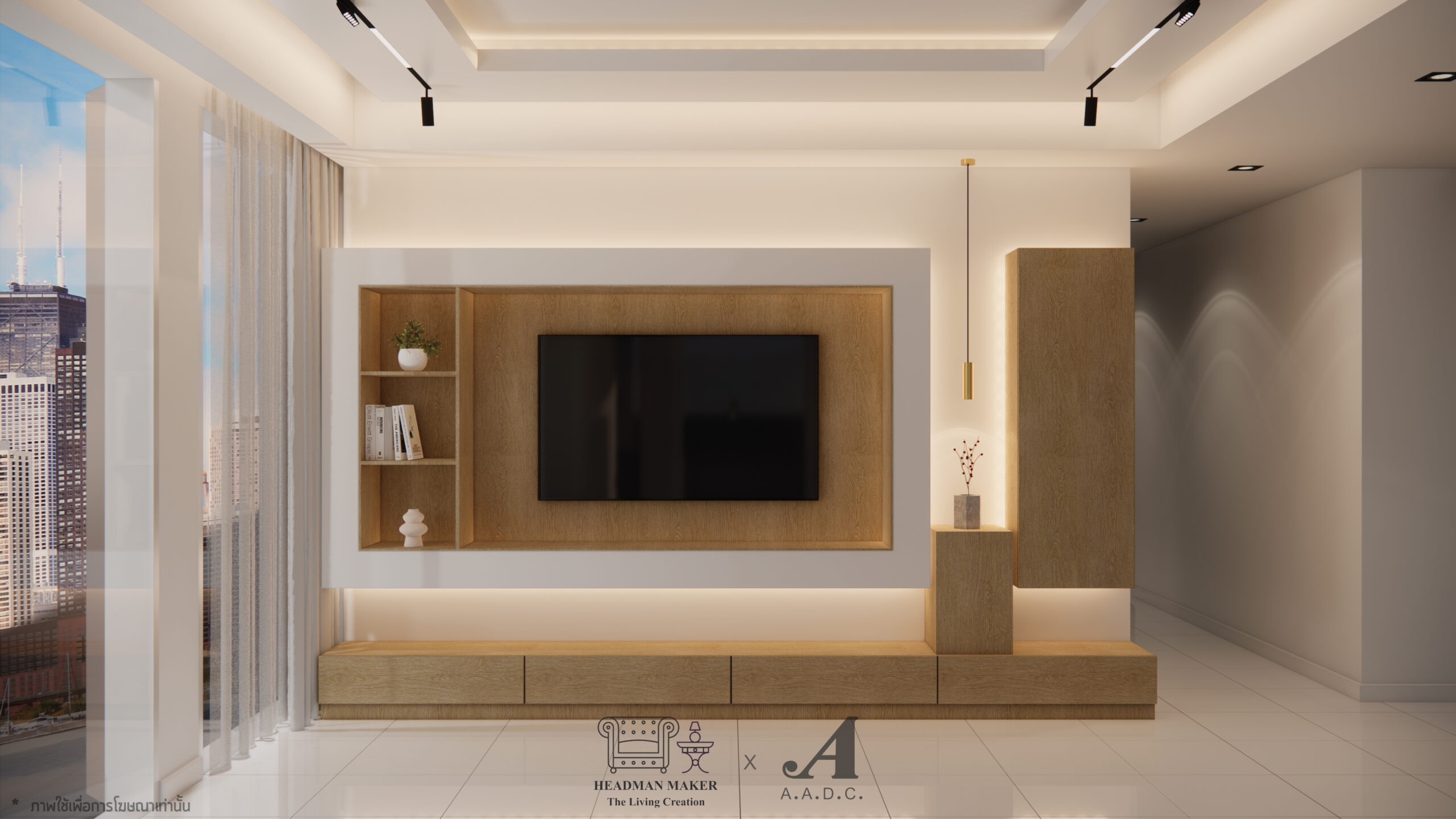 – ชุดตู้ 𝗧𝗩 อีกชุดที่มีกลิ่นไอแบบญี่ปุน ใช้วัสดุเพียง 𝟮 ชนิด แต่เพิ่มสัดส่วนของวัสดุไม้เข้ามา ให้ดูมีน้ำหนักมากขึ้น –