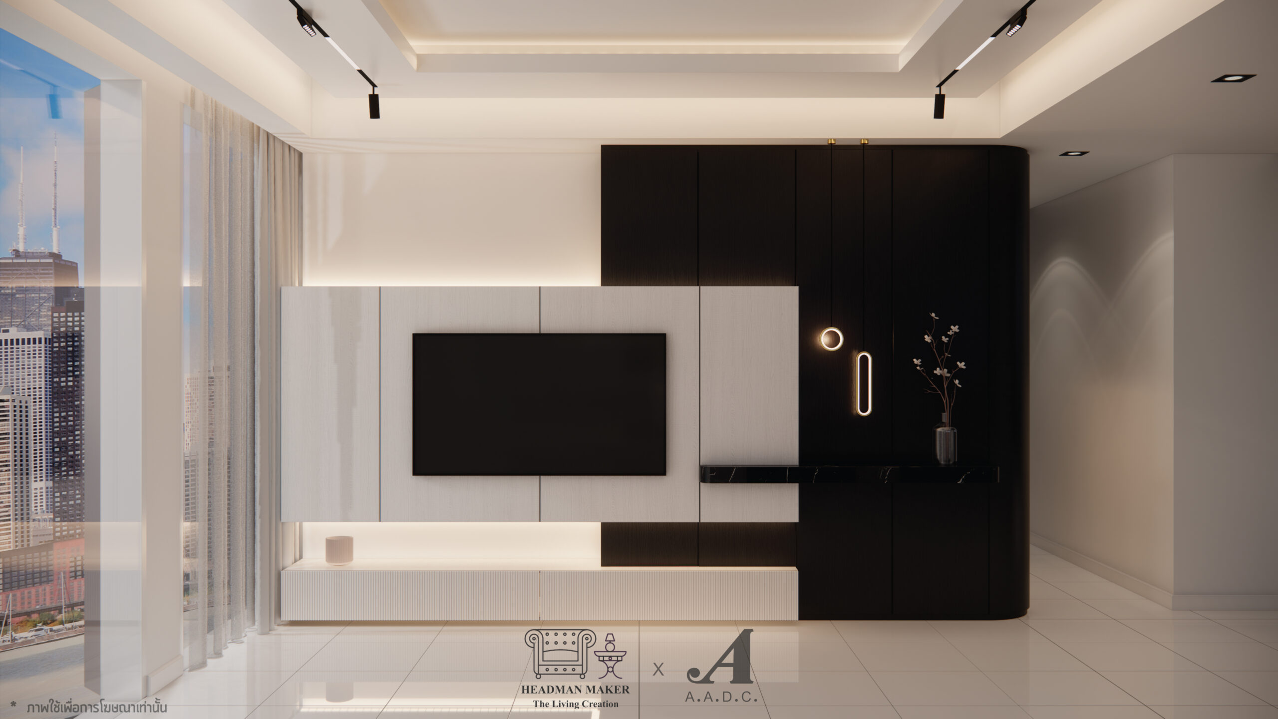 – ชุดตู้อีกชุดที่เน้นดำตัดขาว แอบมีความโค้งมนตรงปลายลดความแข็งกระด้าง –