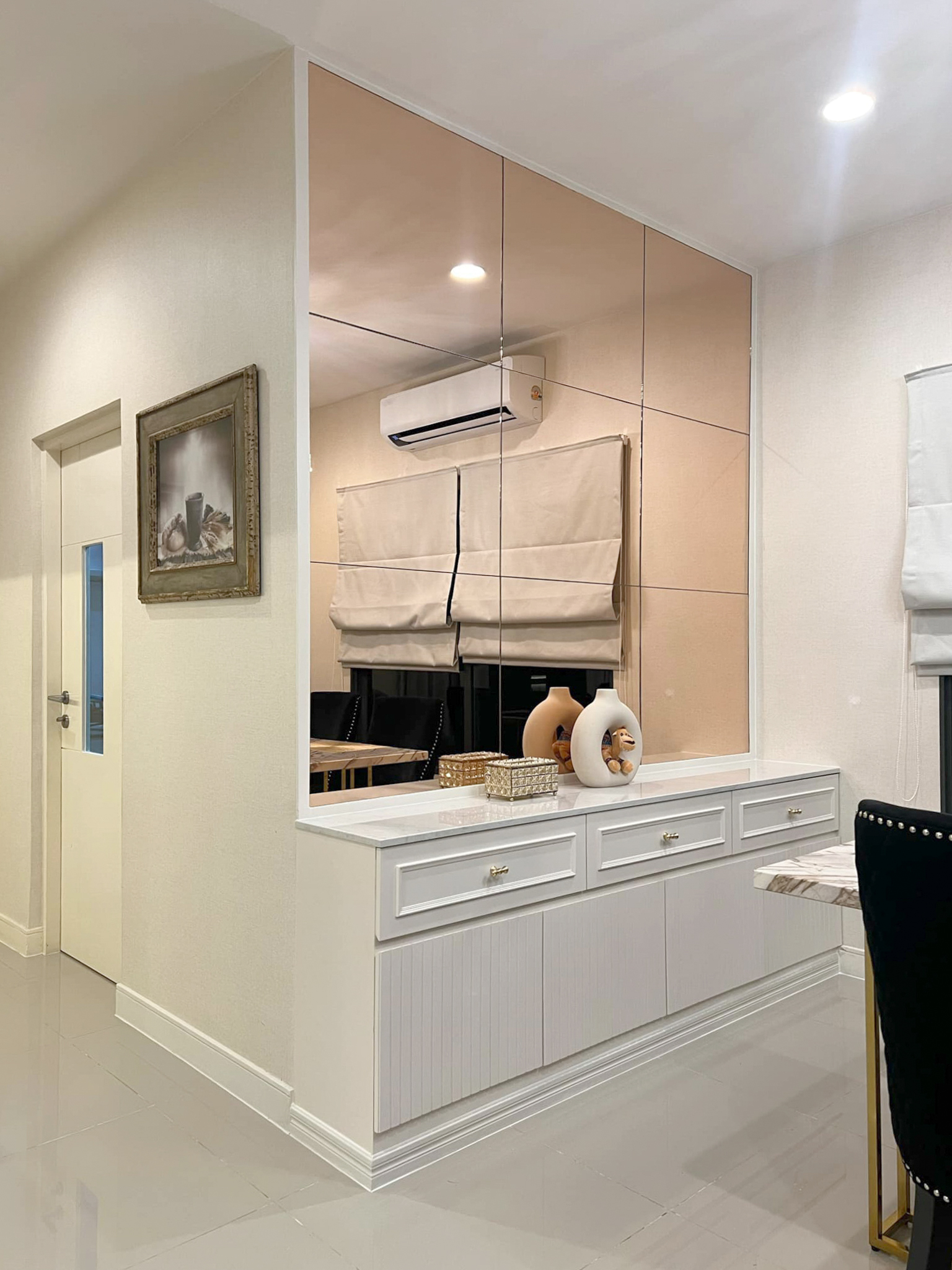 – ตู้เก็บของสไตล์ CONTEMPORARY ที่รวมงานดีไซน์หลากหลายไว้ด้วยกัน มา พร้อมกระจกเงาสีโรสโกลด์ –
