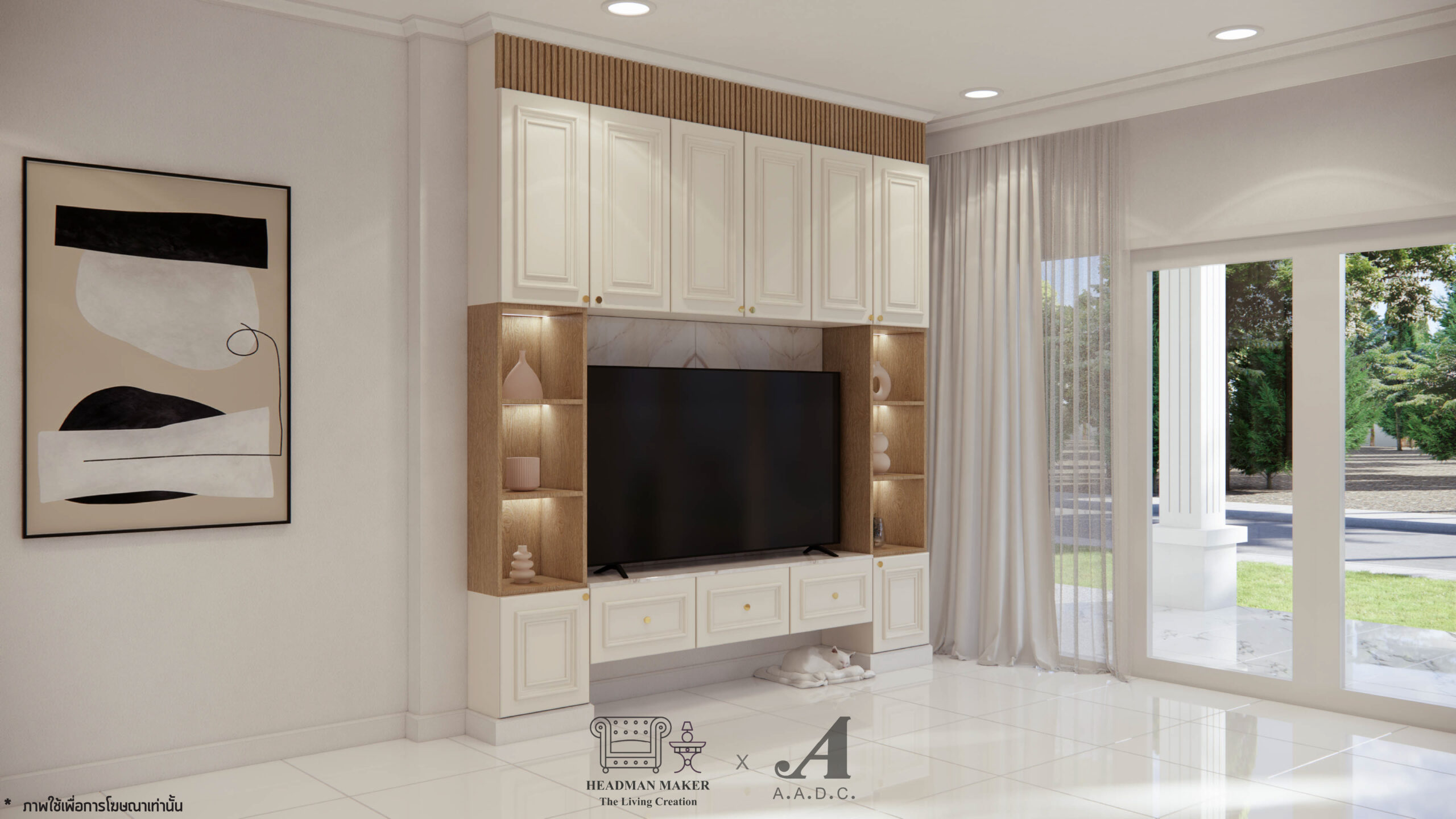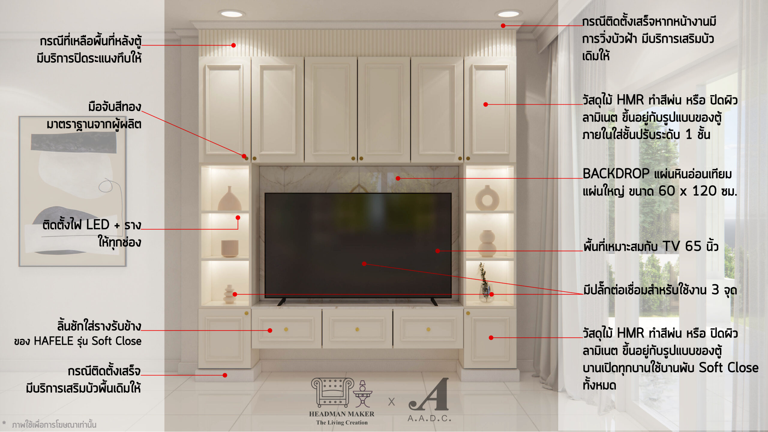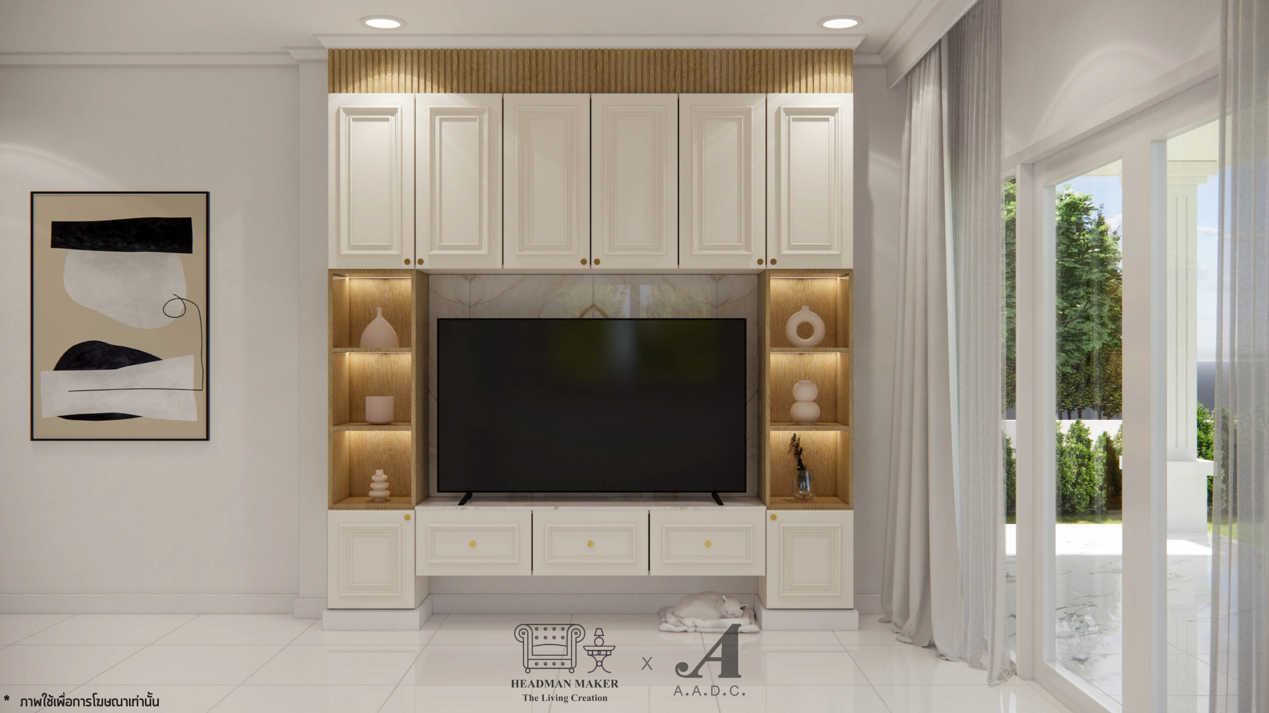 TC02-CS – 001 : ชุด TV สำเร็จรูป ขนาด 240 ซม. ผิวไม้ สีออฟไวท์
